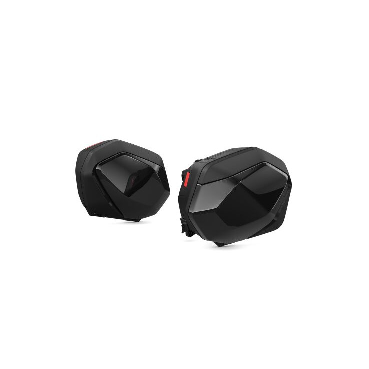 Las maletas de carretera de cobertura dura de alta calidad, con un volumen de 32 litros a la izquierda y 31 litros a la derecha, ofrecen espacio de sobras para equipaje o para un casco.